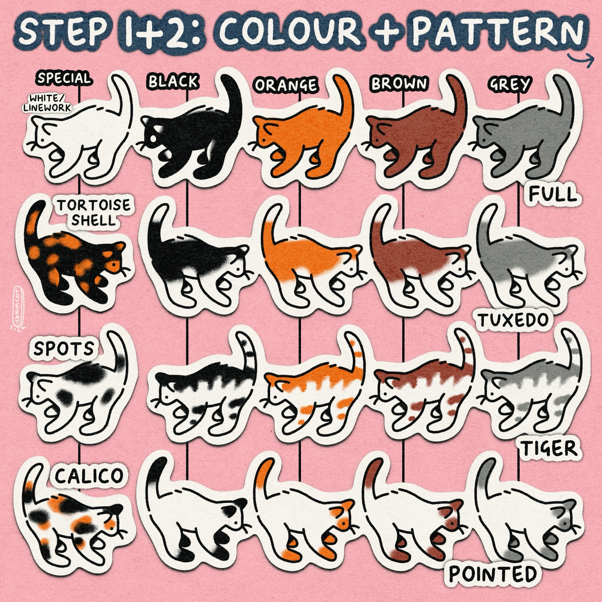 with this customisable "build your own" cat print, you can pick from the template in the photos to make a cat who resembles your own! or it makes a wonderful surprise gift for a cat parent! 🐈 🐈⬛