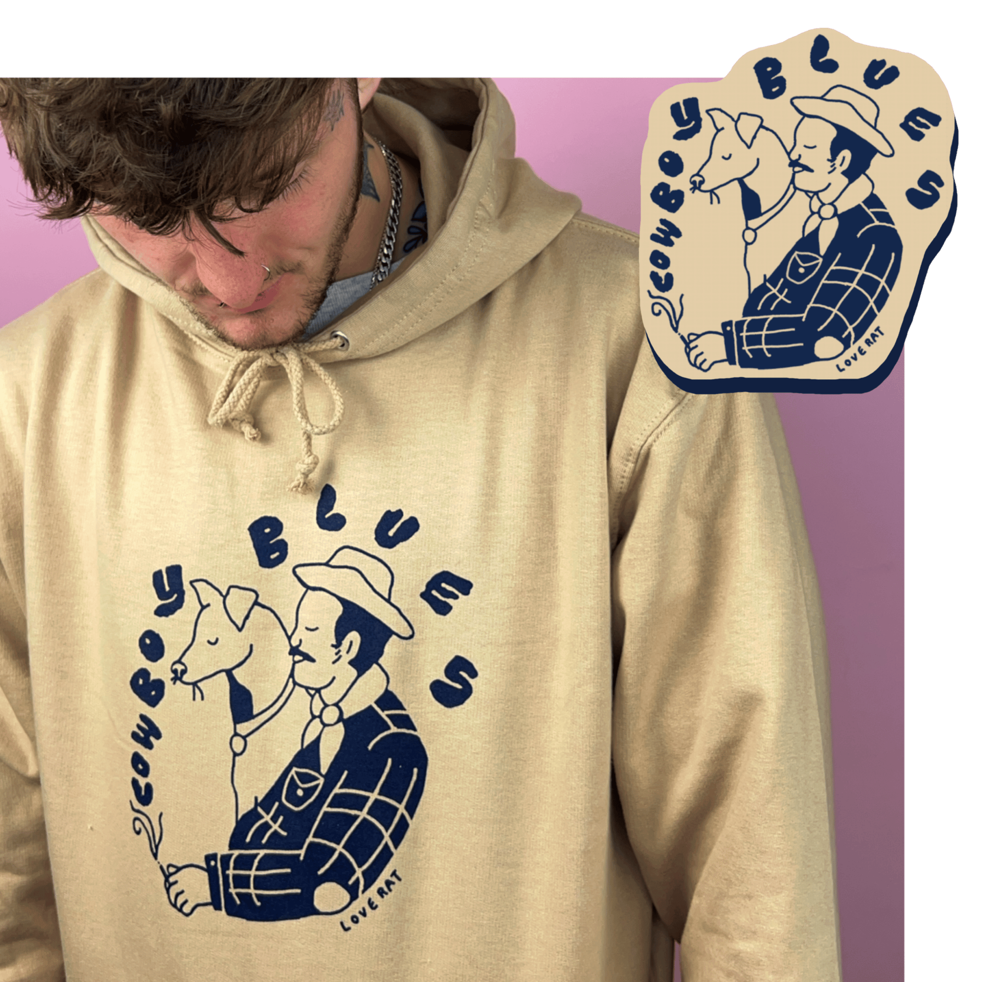 “COWBOY BLUES” HOODIE (SAND/NAVY)