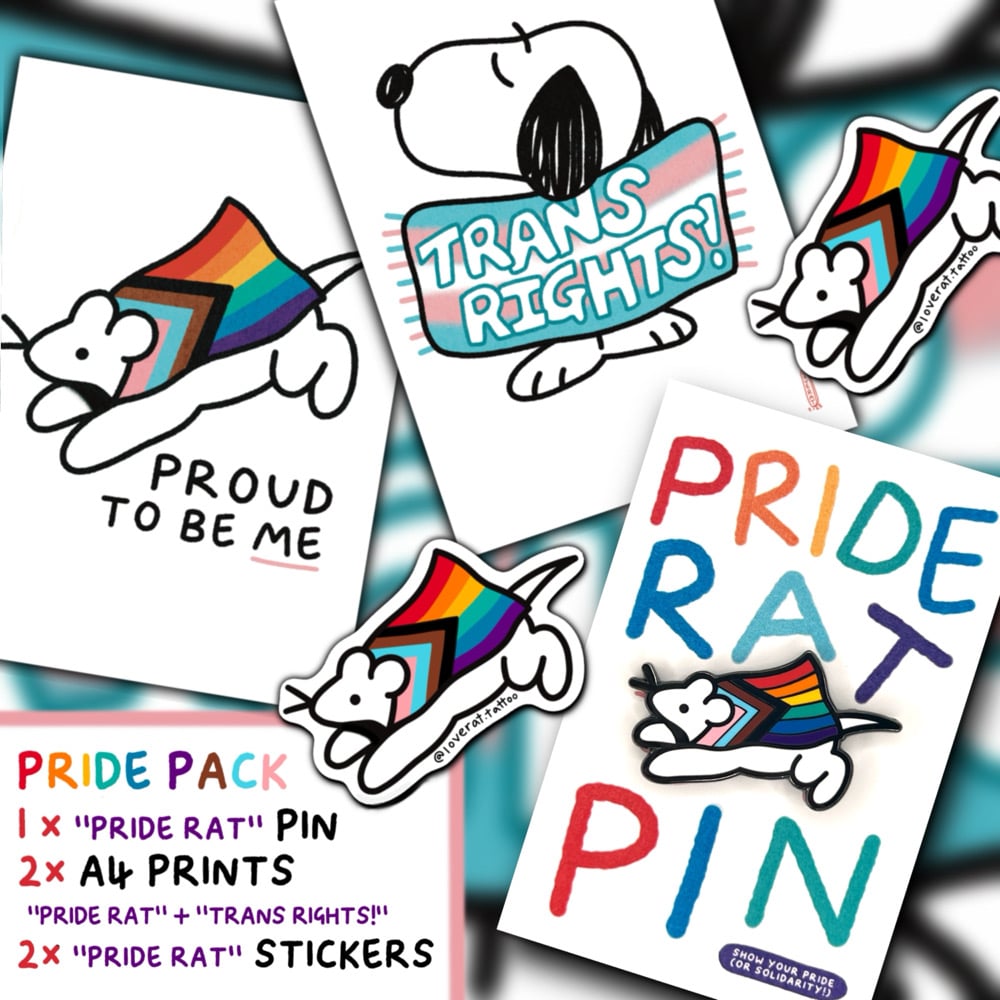 can’t decide on a favourite? with the PRIDE PACK you don’t have to choose, PLUS you’ll save almost 30% ✨🌟 And to sweeten the deal, a couple free PRIDE RAT stickers as the 🍒 on top as a thank you 🐀🏳️🌈🏳️⚧️